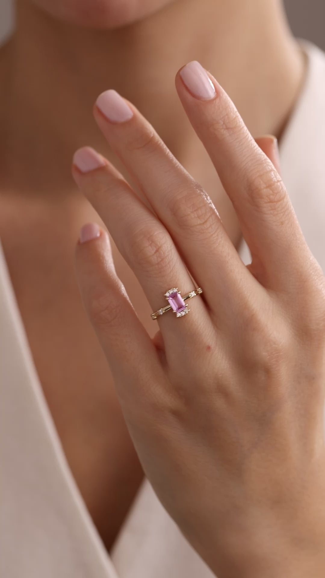 14k Gold Pink Sapphire Baguette Ring