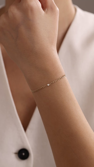 14k Gold Solitaire Curb Chain Bracelet