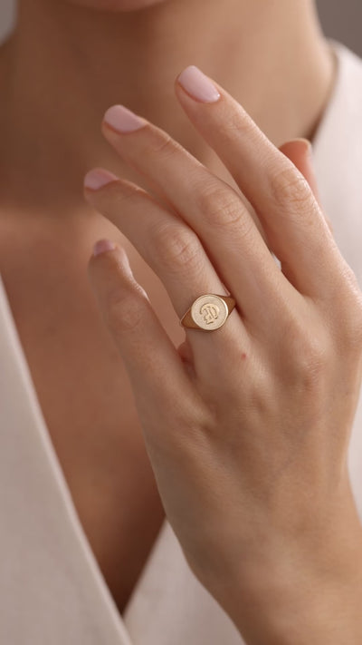 14k Gold 3D Initial Signet Ring