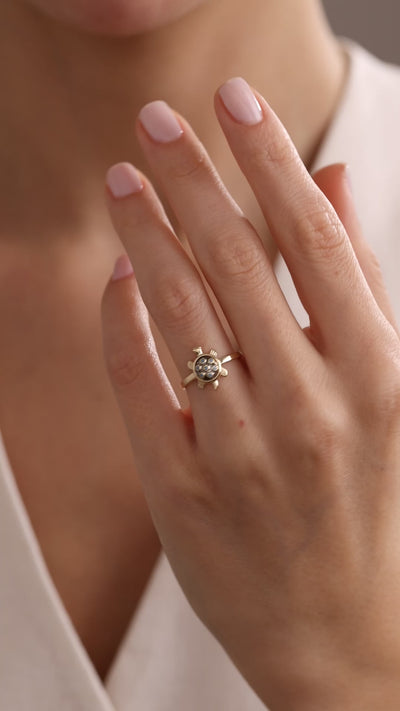 14k Gold Tortoise Blue Sapphire Ring